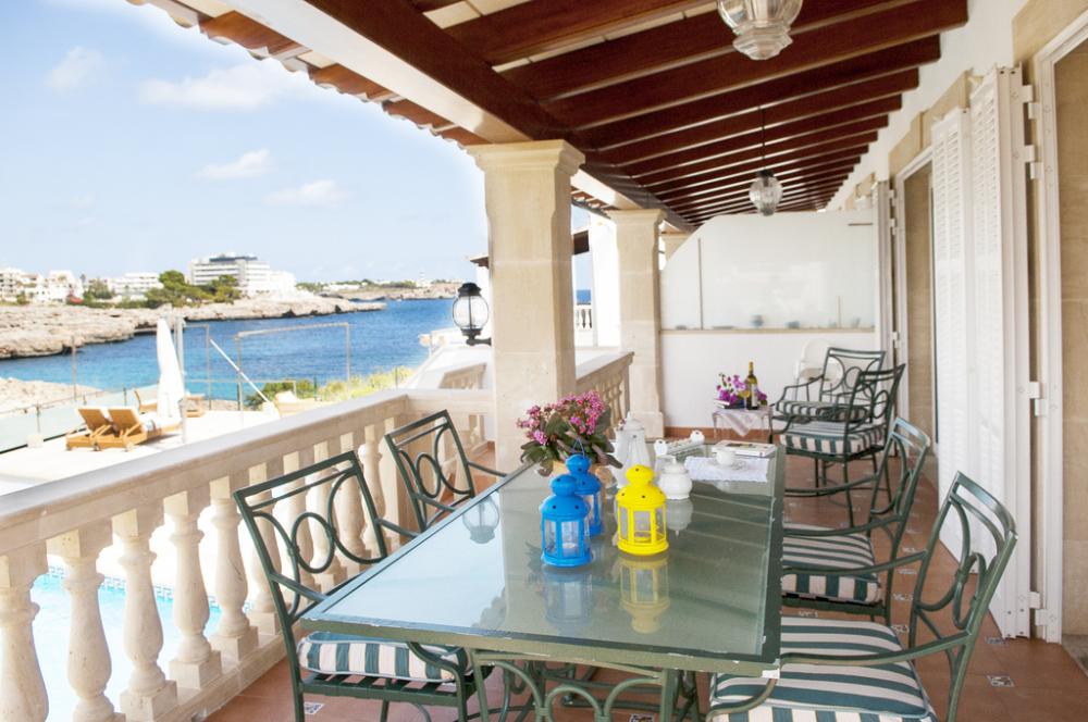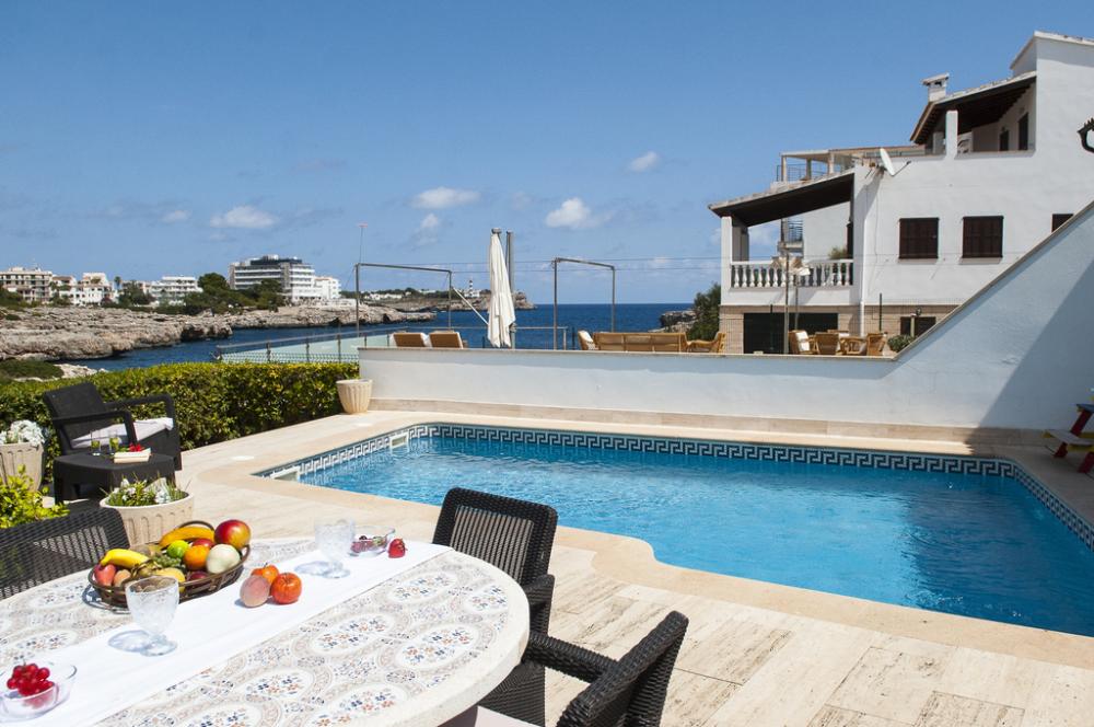 Casa Porto Colom is een half-vrijstaande villa ideaal voor vakantie met  familie / vrienden. Het is verdeeld over twee verdiepingen en heeft gedeeltelijk kust en zeeuitzicht vanaf het overdekte terras en drie slaapkamers.Vanuit de hal is er toegang tot de open en lichte woon / eetkamer met openslaande deuren naar het overdekte terras dat gedeeltelijk uitzicht op zee geniet.Ook op deze verdieping een- keuken, een badkamer met een bad. De trap leidt naar de bovenste verdieping waar u drie slaapkamers heeft.De master bedroom met een tweepersoonsbed, toegang tot een klein balkon met uitzicht op zee en een eigen badkamer met hydromassage bad. De andere twee slaapkamers hebben twee 1-persoonsbedden (opgesteld als 2-persoonsbed) waarvan een met een klein balkon met uitzicht op zee. De twee slaapkamers delen een aparte badkamer met hydromassagebad.Vanuit de woonkamer is er toegang tot het overdekte terras met een tafel en stoelen om buiten te eten met uitzicht op het zwembad en de open zee te genieten. Vanaf het overdekte terras met een trap naar beneden naar het mooie zwembad. Zonneterras aan de ene kant van het zwembad met ligbedden; de perfecte plek om te genieten van de lange zomerse dag. Er is ook een tafel, stoelen, een draagbare barbecue en een tafeltennistafel voor de lol van het hele gezin. Vanaf het zwembad door een hek, er is een klein pad dat via de rotsen naar zee gaat.Casa Porto Colom is slechts 200m gelegen van het mooie zandstrand van Cala Marsal. In de omgeving is er een kleine supermarkt en een paar restaurants met uitzicht op het strand.