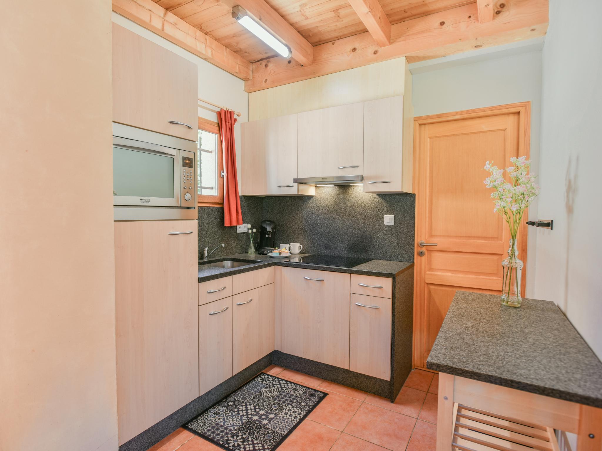 Begane grond: (woonkamer(TV(digital), zithoek), eetkamer(eettafel), open keuken(kookplaat(inductie), koffiezetapparaat(filtermaling), magnetron, afwasmachine, koelkast, vriezer), slaapkamer met badkamer(2x 1-pers. bed(90 x 200 cm), douche, wastafel), wc)
