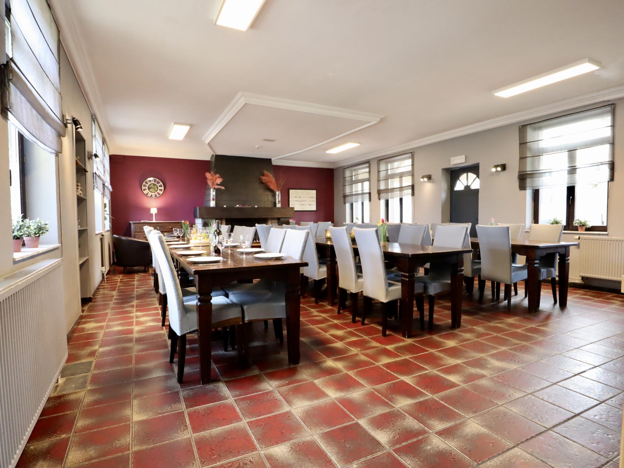 Dit grote vakantiehuis is ideaal voor een grote familie, vrienden of voor een teambuilding. Je kunt genieten van een ruime, gezellige eetkamer, een professionele keuken en zithoeken met televisie, waarvan één met een open haard en een andere met een bar. Voor extra plezier kun je terecht in de speelkamers met drie biljarttafels, airhockey, tafelvoetbal en een pingpongtafel. In de omheinde tuin kunnen de kinderen heerlijk spelen en is er een schommel en een glijbaan
