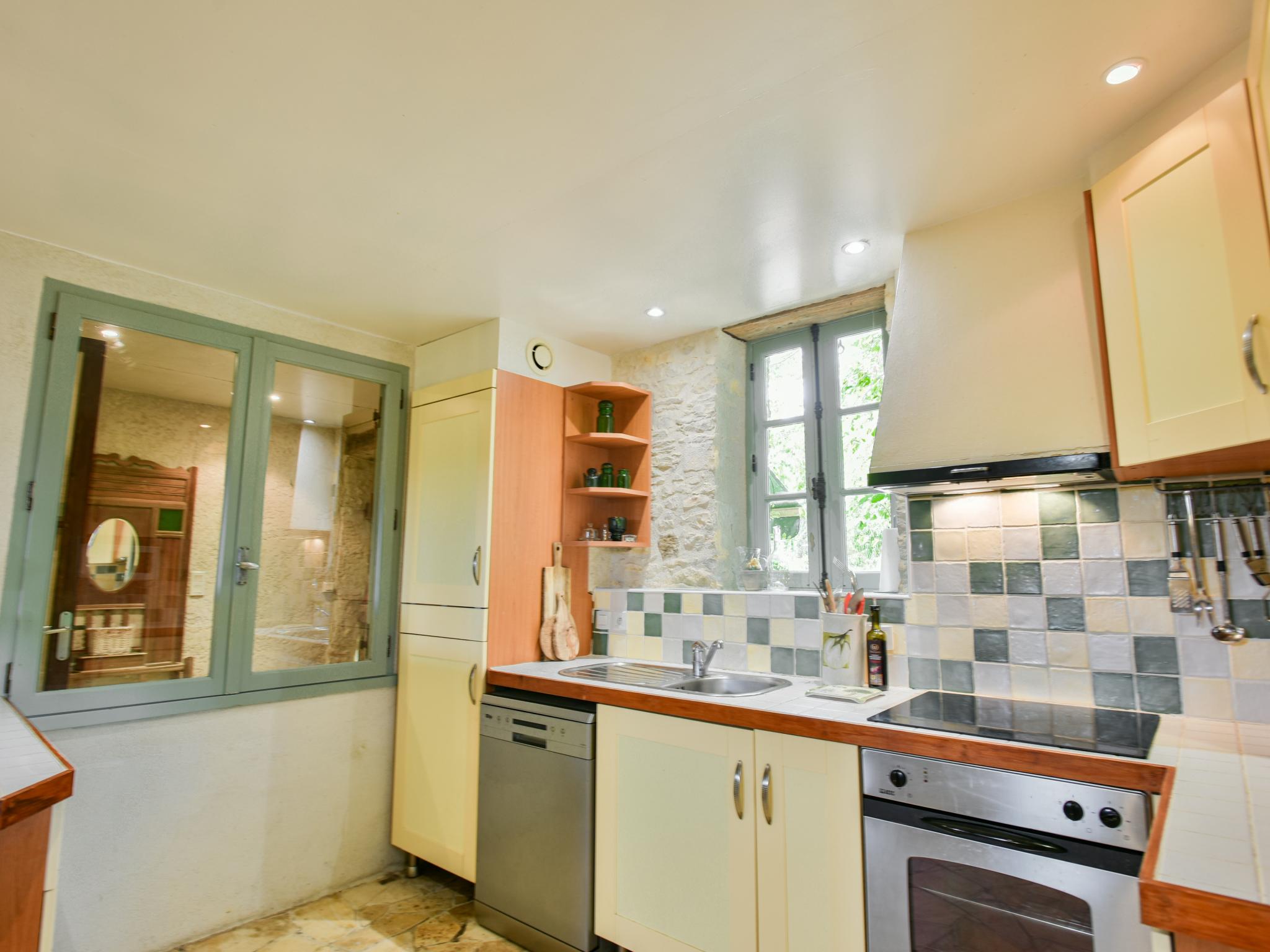 badkamer met douche, wastafel, wc , buitenkeuken(gedeeld met andere gasten), terras(privé), terras(gedeeld met andere gasten), tuinmeubilair, ligbedden, BBQ(houtskool), 1x parking, trampoline, parasol, zwembad(gedeeld met andere gasten, verwarmd, geopend van Mei t/m half Sep), jeu de boules baan(gedeeld met andere gasten), speeltoestellen(gedeeld met andere gasten), glijbaan(gedeeld met andere gasten), 1x kinderbed (excl. beddengoed)(tegen betaling), Schommel