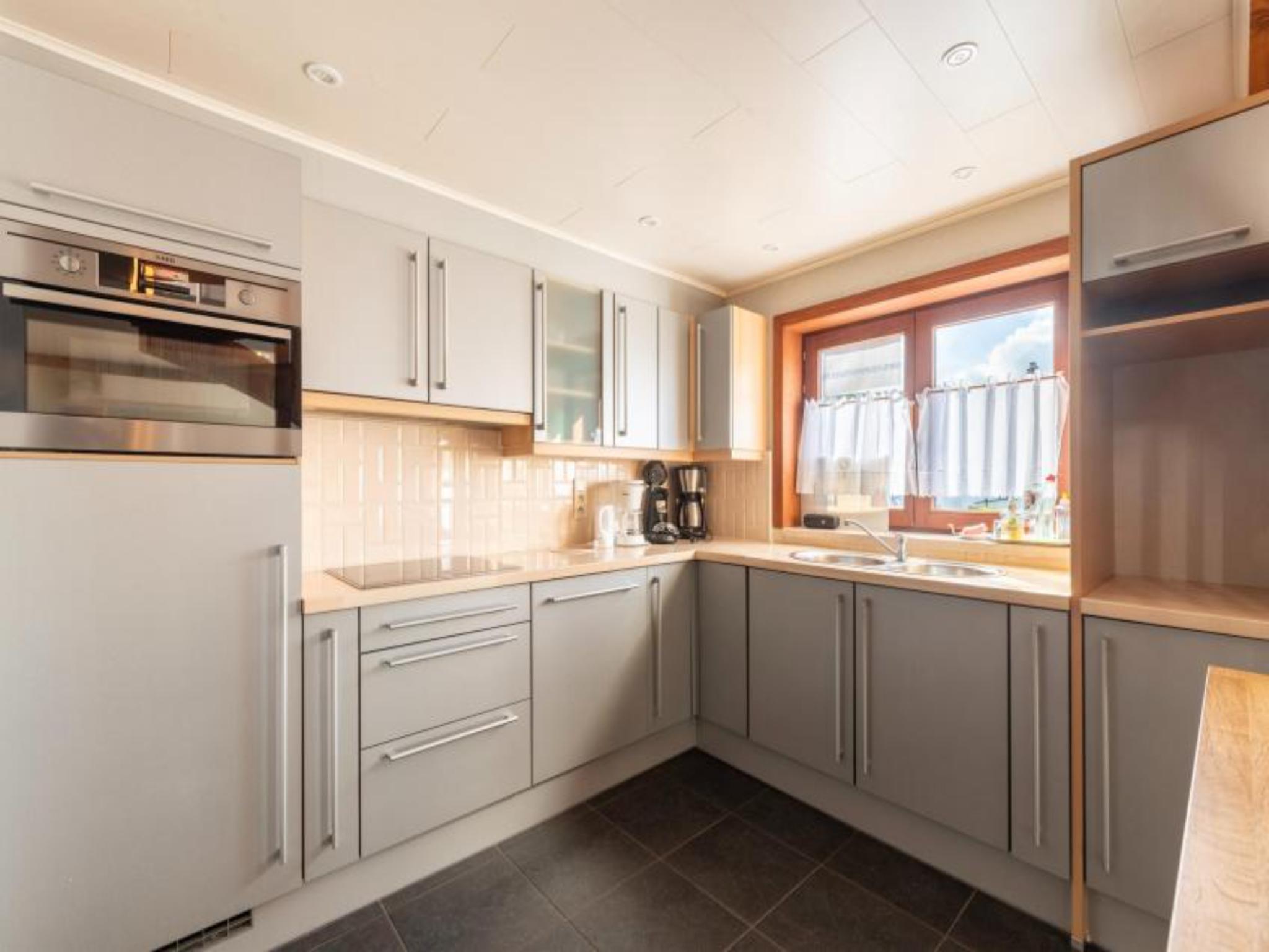 Begane grond: open keuken met kookplaat, waterkoker, afzuigkap, koffiezetapparaat(senseo pads), oven, magnetron, koelkast(+ vriesvak) , woon/eetkamer met TV(flatscreen, digital), eettafel, zithoek , slaapkamer met 2-pers. bed(2 persoons dekbed, 160 x 200 cm) , badkamer met massagedouche, wastafel , toilet met wc
