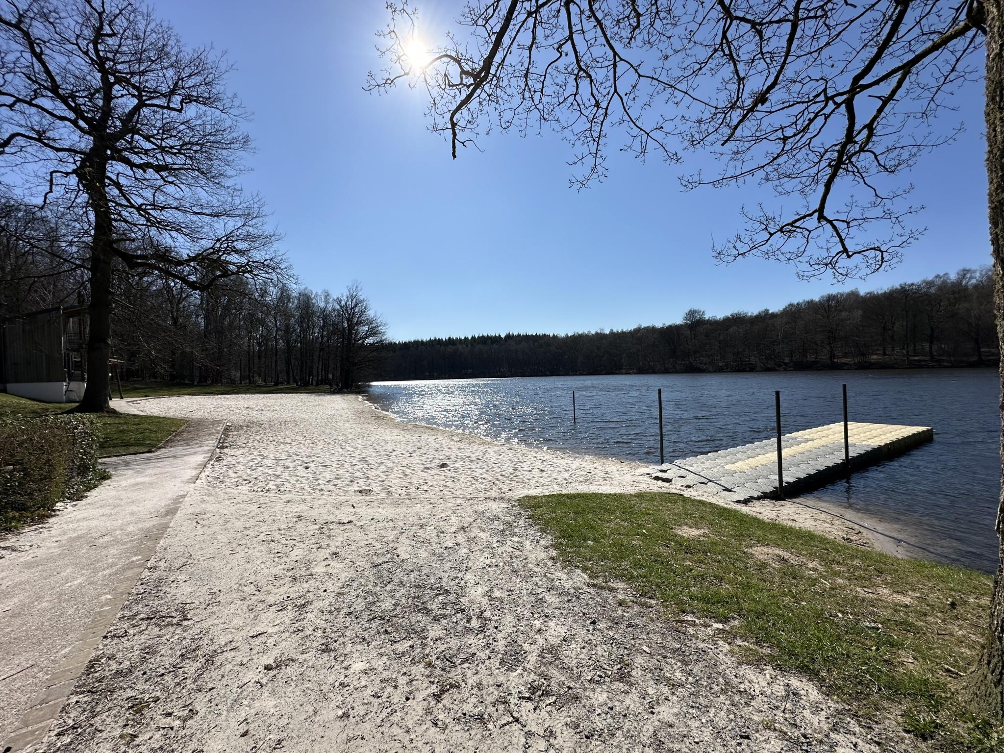 Vijver met zandstrand (bewaakt in de zomer) op loopafstand (5-10 minuten)
