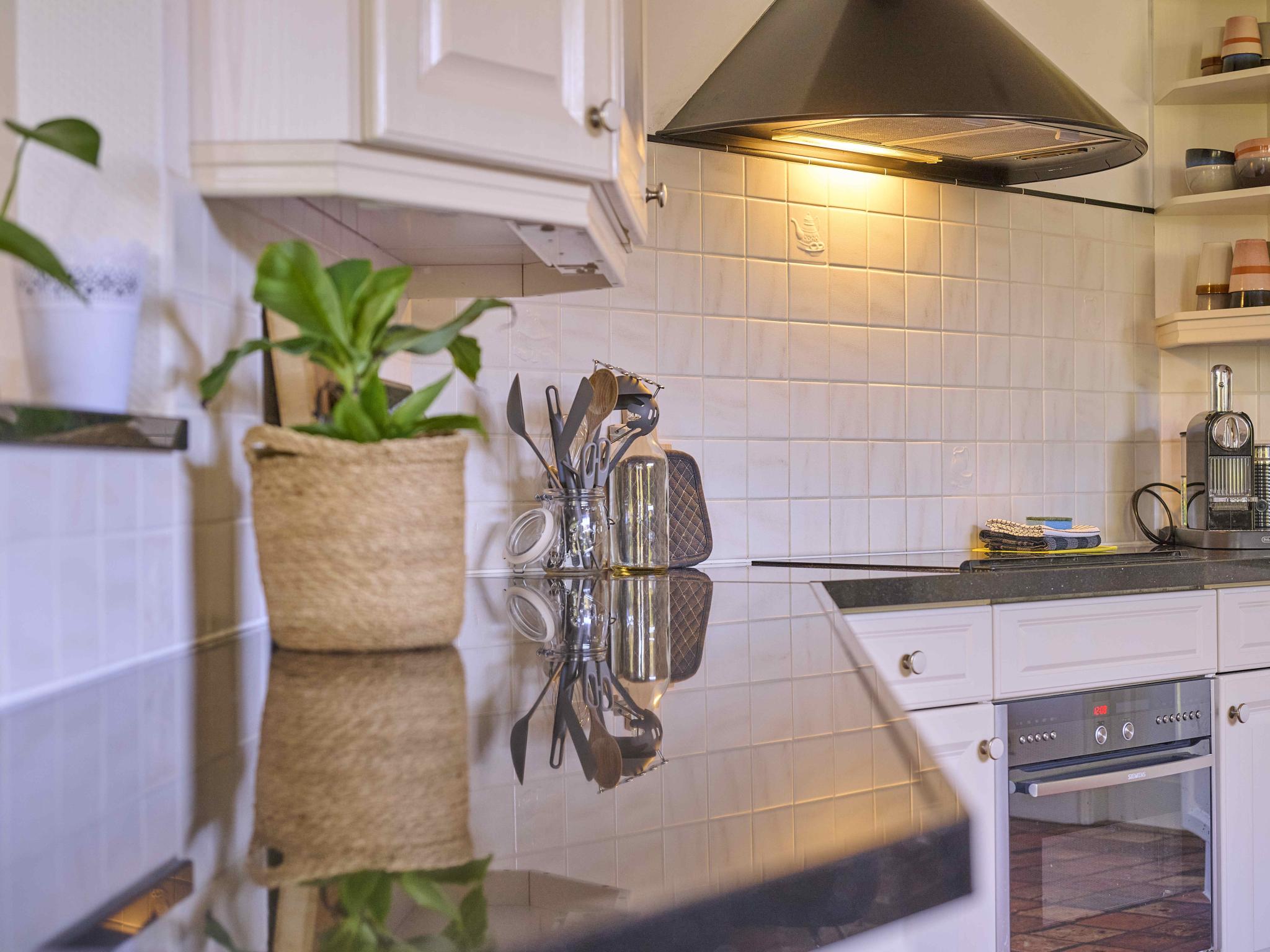Begane grond: (open keuken(eettafel(4 personen), kookplaat(4 kookplaten, inductie), waterkoker, broodrooster, afzuigkap, koffiezetapparaat(nespresso cups), combimagnetron, afwasmachine, koel-/vriescombinatie), woon/slaapkamer(2-pers. bed(boxspring, 160 x 200 cm), 2-pers. slaapbank(160 x 200 cm), TV(flatscreen, smart TV, Nederlandse zender(s), Duitse zender(s), internationale zender(s)), zithoek), badkamer(douche, wastafel, wc))