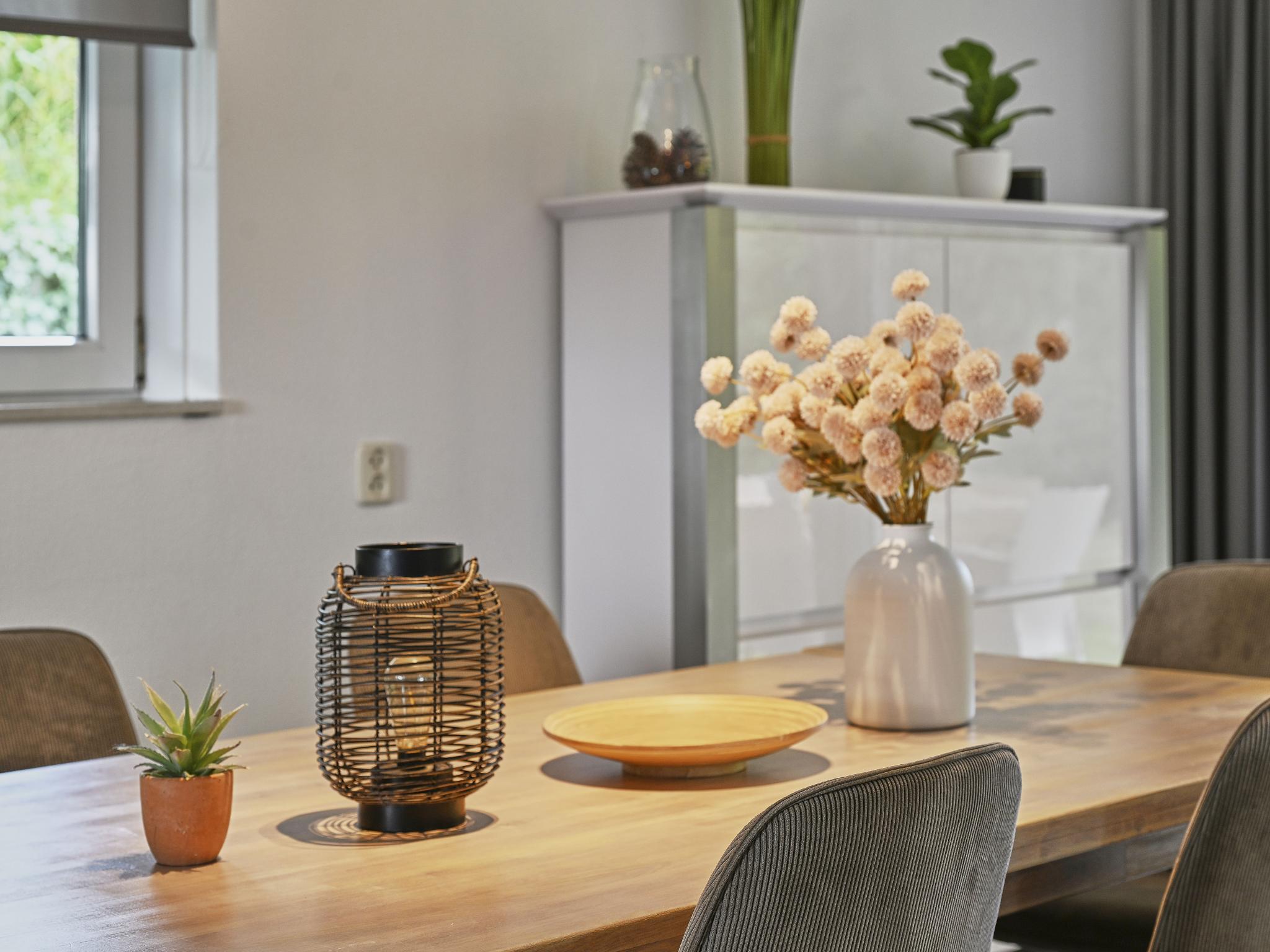 Begane grond: (keuken(waterkoker, koffiezetapparaat(pads), combimagnetron, afwasmachine, koelkast, vriezer, koel-/vriescombinatie), woon/eetkamer(TV(digital)), badkamer(douche, wastafel, wc))