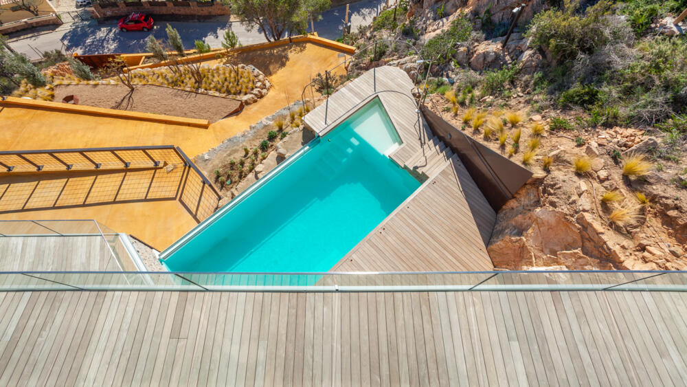 Het is de ideale woning om tot rust te komen, gezien de zeer rustige ligging en het fantastische uitzicht. De woning beschikt over een privétuin met privézwembad van 8×4 meter en prachtig uitzicht op zee. Het huis met zijn stijlvolle grote ramen laat het natuurlijke licht de hele dag door naar binnen filteren, waardoor een lichte, luchtige ruimte ontstaat.