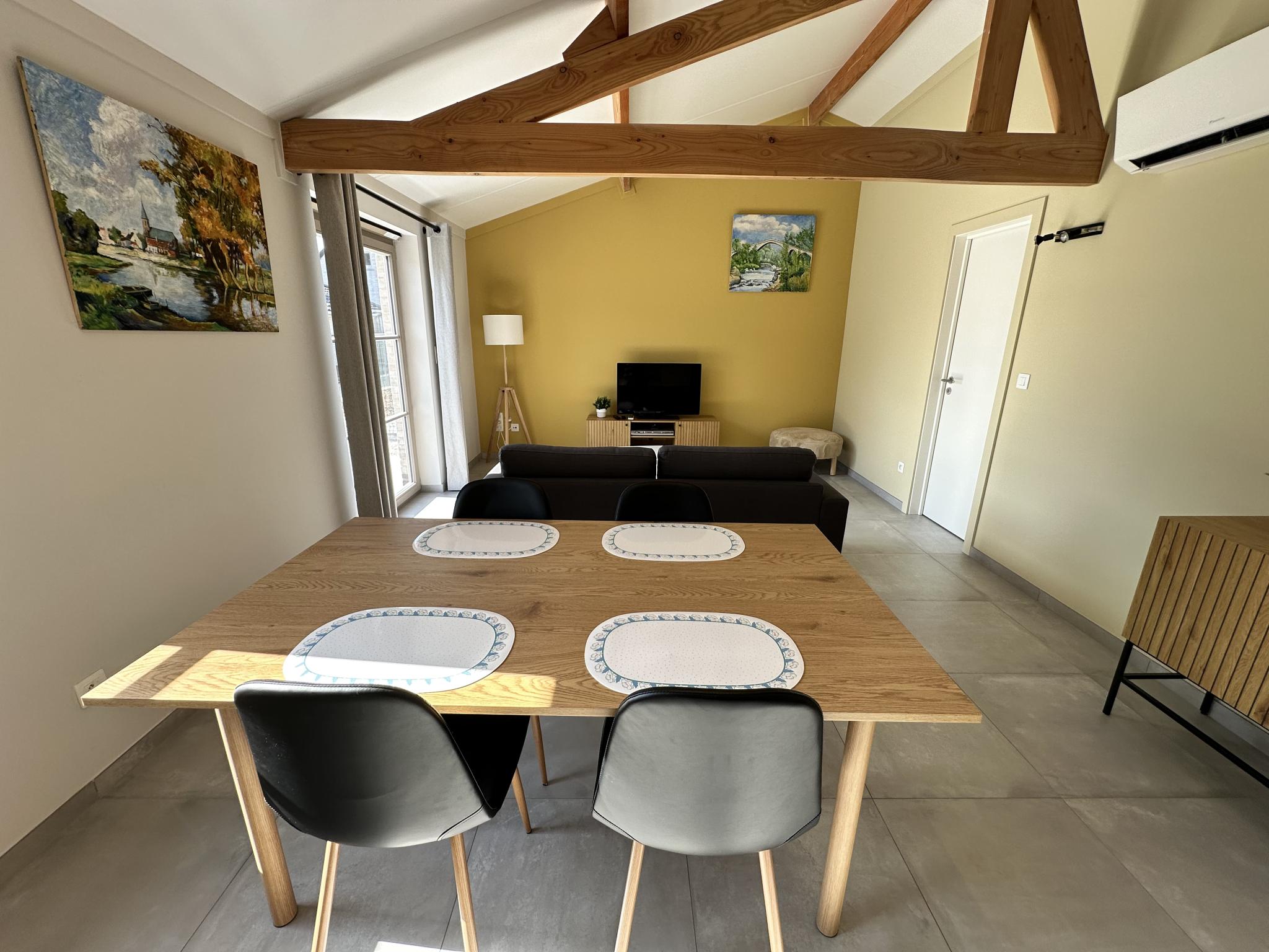 Begane grond: (open keuken(kookplaat, waterkoker, koffiezetapparaat(filtermaling), oven, magnetron, afwasmachine, koelkast(+ vriesvak)), woon/eetkamer(TV, eettafel, zithoek, 1x kinderstoel), slaapkamer(2-pers. bed(2 persoons dekbed, 160 x 200 cm)), slaapkamer(2x 1-pers. bed(dekbed, 90 x 200 cm)), badkamer(bad met douche, wastafel, haardroger), toilet(wc), airconditioning)