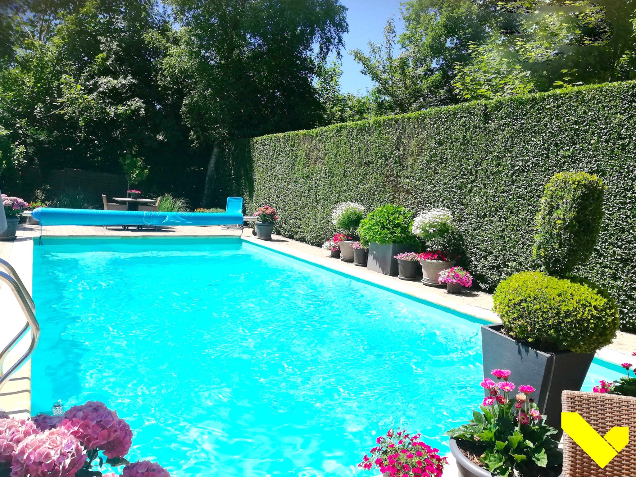 1x garage, hottub, sauna, terras, tuin(privé), tuinmeubilair, ligstoelen, zwembad(privé, verwarmd, 8 x 4 m., diepte: 1.6 – 1.7m, geopend van Apr t/m Sep), Tuinhuis